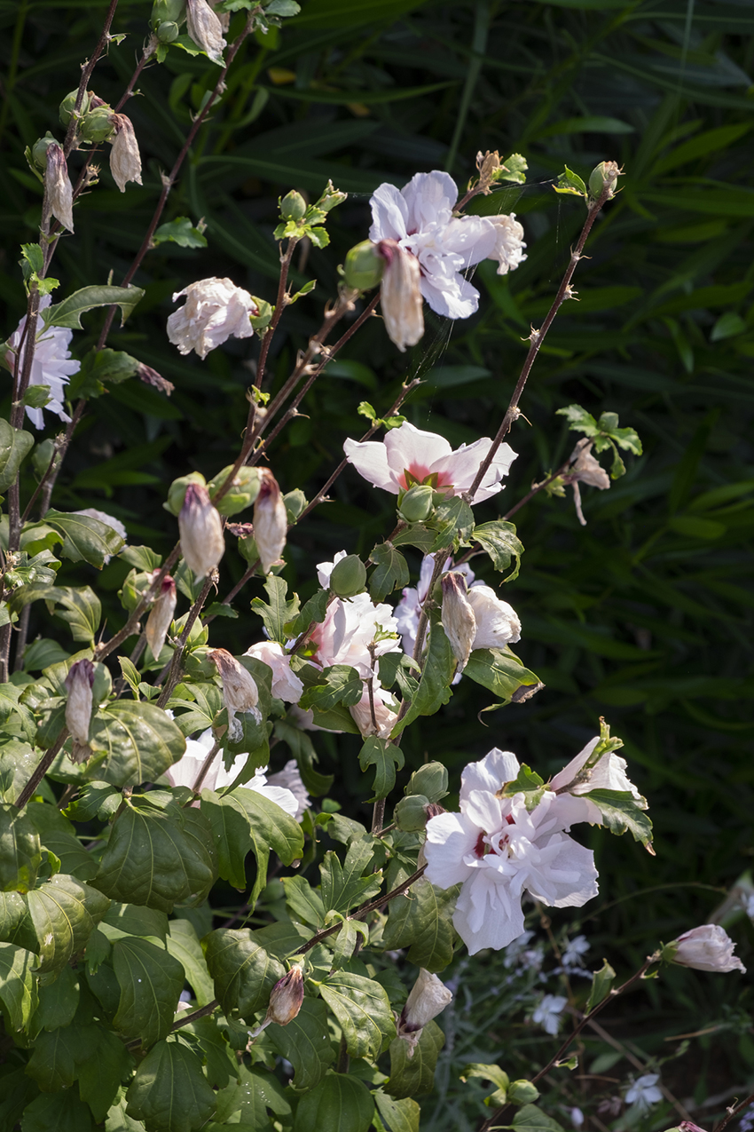 Η μελέτη του κήπου βασίστηκε στη δημιουργία οργανικών συνθέσεων με ποικιλία από ανθοφόρα είδη, με εναλλαγές στην εποχή ανθοφορίας τους. Ιδιαίτερη έμφαση δόθηκε στις τριανταφυλλιές, οι οποίες λειτουργούν ως σημεία εστίασης στον κήπο. Στην είσοδο ο χλοοτάπητας συνδυάζεται με αρωματικά φυτά, αγρωστώδη και πολυετή ποώδη, διαμορφώνοντας ένα φιλόξενο περιβάλλον για τους επισκέπτες του κήπου. Κατά μήκος της πισίνας φυτεύτηκαν πολυετή ποώδη και ανθοφόροι θάμνοι, όπως Salvia farinacea, Gaura lindheimeri alba και Perovskia abrotanoides, δίνοντας χρώμα και αίσθηση κίνησης στον κήπο. Ψηλοί αειθαλείς θάμνοι και δένδρα έχουν φυτευτεί περιμετρικά του οικοπέδου, με σκοπό την ιδιωτικότητα και την κάλυψη των γειτονικών ιδιοκτησιών.