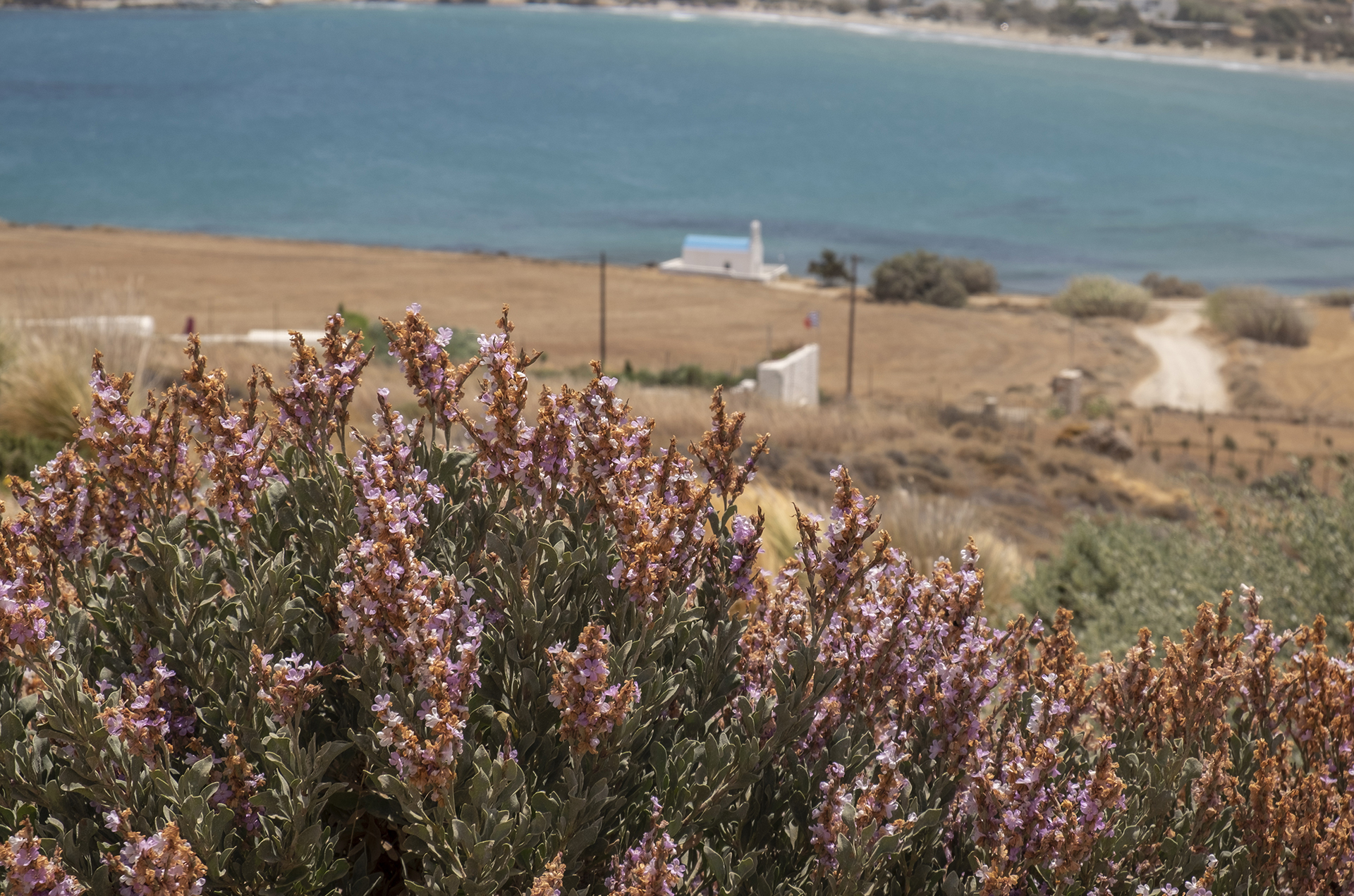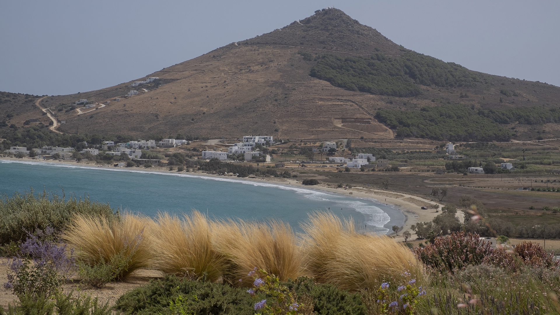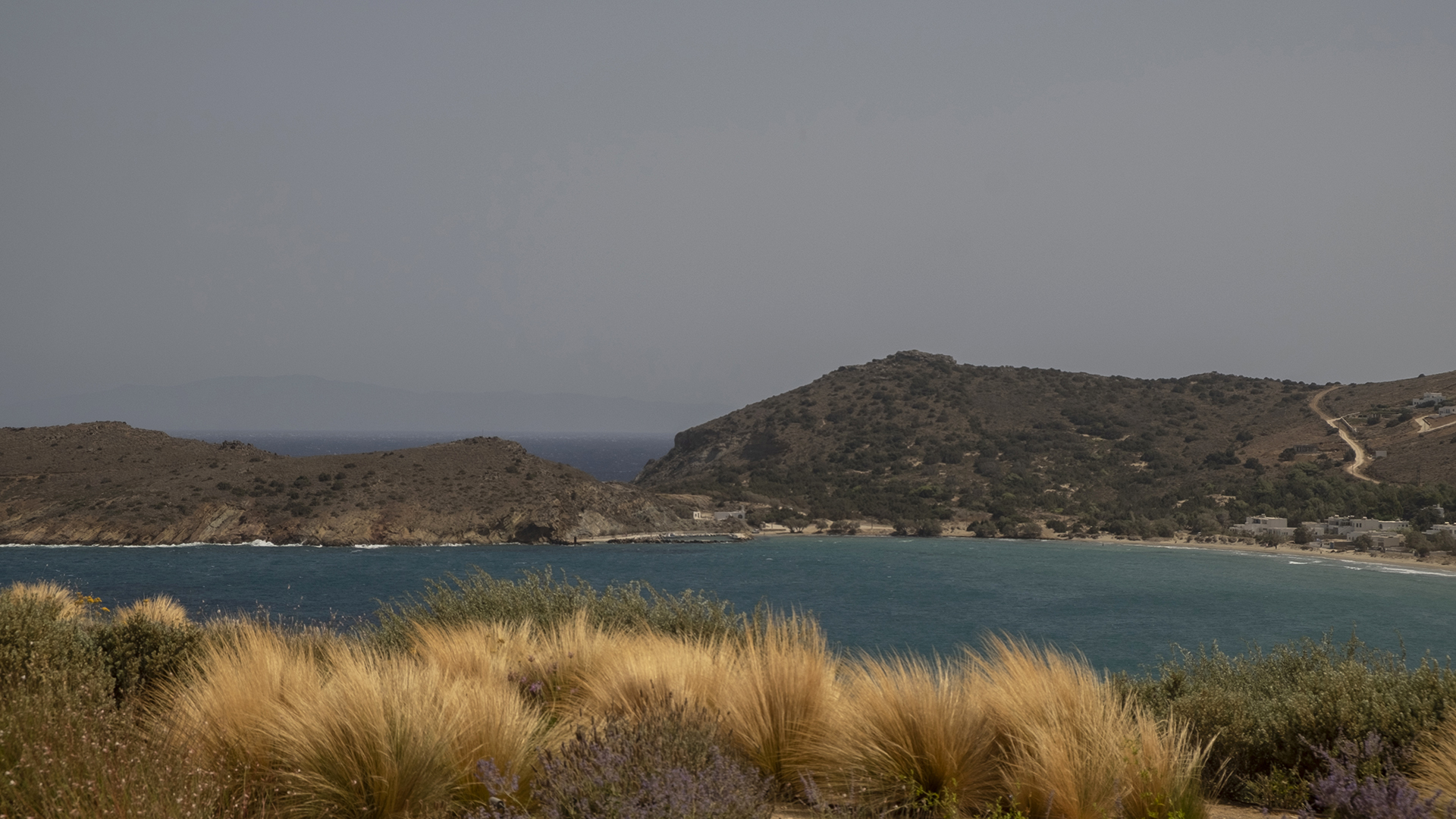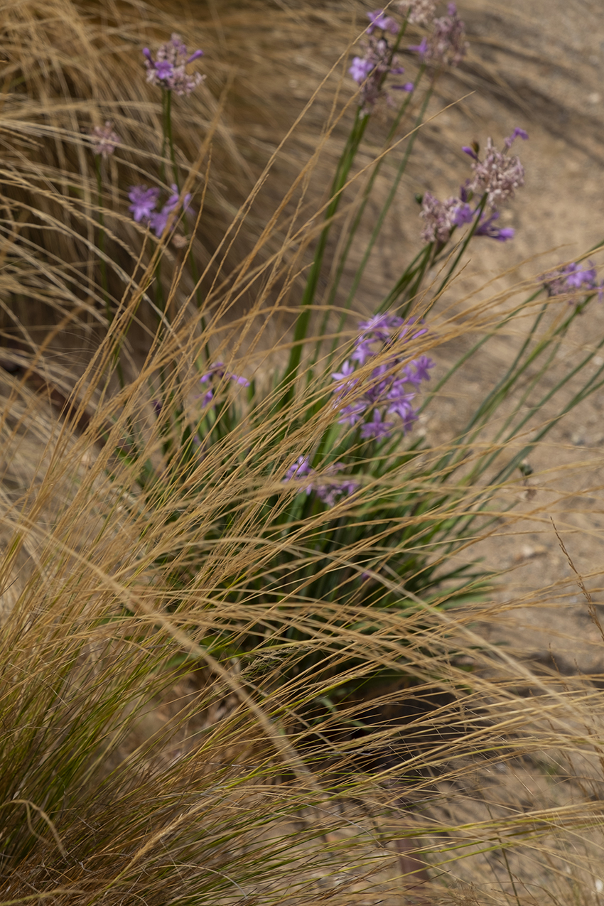 Our goal was to create a garden that embraces the site’s natural topography and panoramic sea views. Set behind a large olive grove, it features clusters of native, drought-tolerant plants that are well-adapted to Paros’ climatic conditions. A key design element is the planted strips – integrated into the outdoor stairs of the house – where Stipa tenuissima grasses add texture and a sense of movement, while also blending with the palette of hardscape materials. Green roofs planted with low Mediterranean aromatics, perennials and grasses help to further integrate the residence into the natural landscape of Molos and improve the microclimatic conditions of the house.