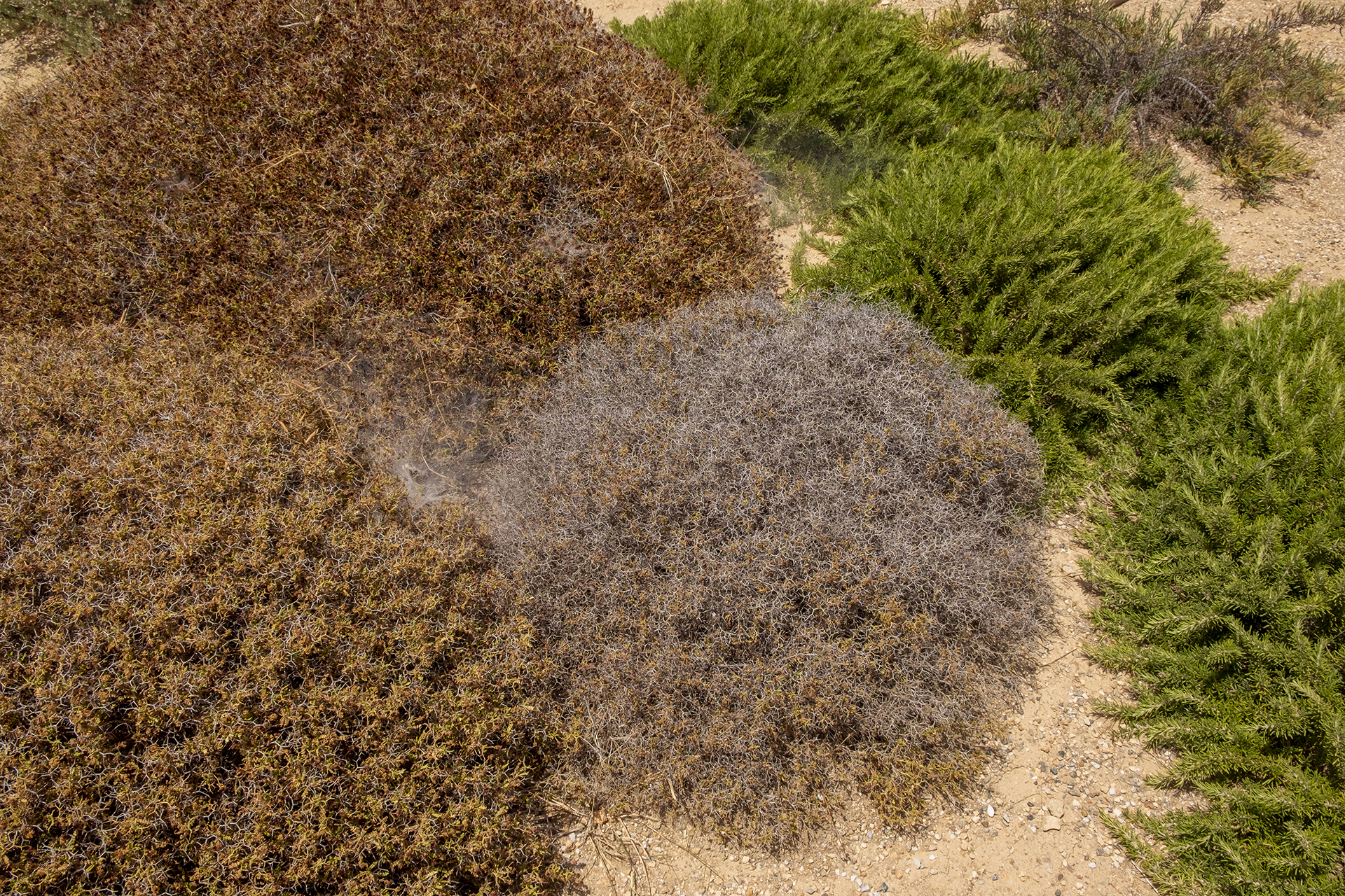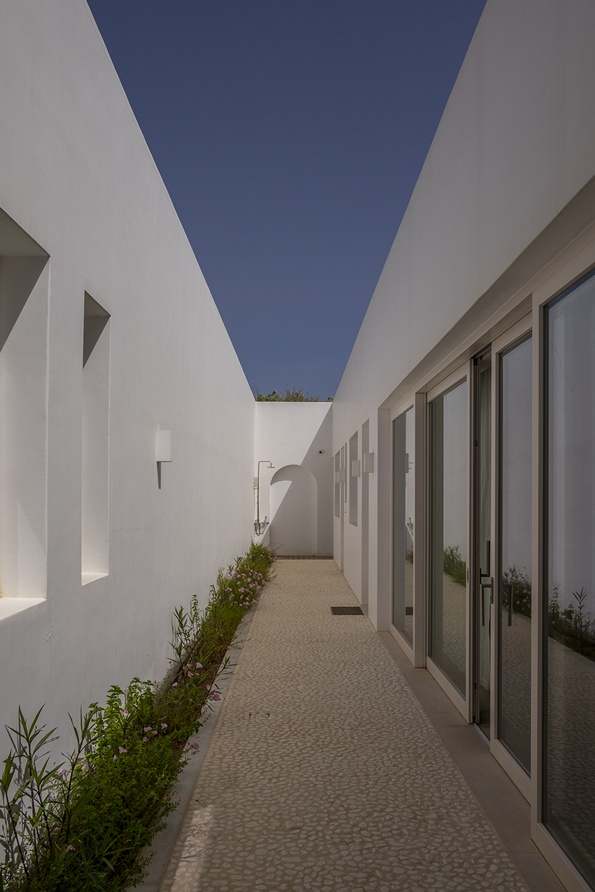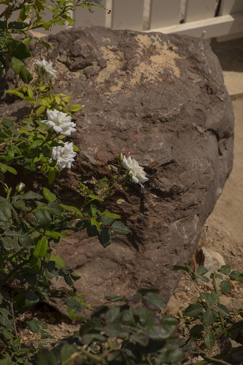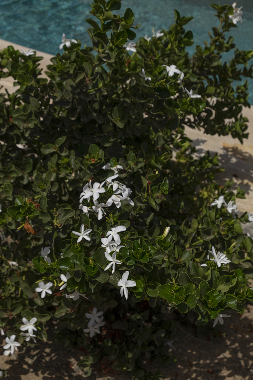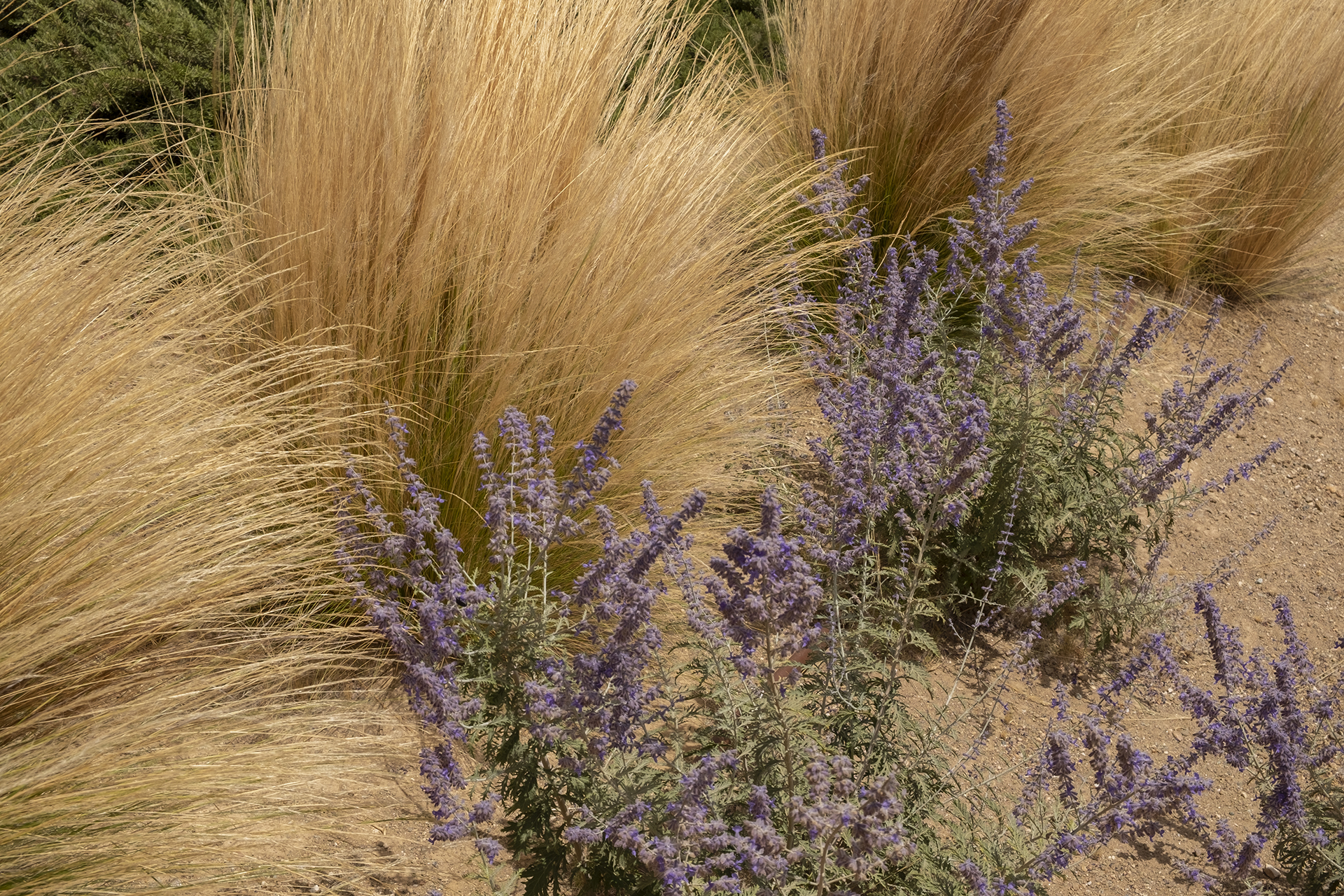 Our goal was to create a garden that embraces the site’s natural topography and panoramic sea views. Set behind a large olive grove, it features clusters of native, drought-tolerant plants that are well-adapted to Paros’ climatic conditions. A key design element is the planted strips – integrated into the outdoor stairs of the house – where Stipa tenuissima grasses add texture and a sense of movement, while also blending with the palette of hardscape materials. Green roofs planted with low Mediterranean aromatics, perennials and grasses help to further integrate the residence into the natural landscape of Molos and improve the microclimatic conditions of the house.
